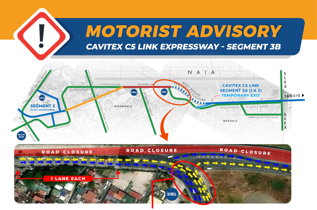 This traffic adjustment will allow the completion of the remaining 2-kilometer Segment 3B (Kaingin to RSG Subdivision) of the CAVITEX C5 Link, a 7.7-kilometer segment of CAVITEX designed to enhance connectivity between CAVITEX R-1 (Roxas Blvd–Zapote) and C5 Road in Taguig City, helping to ease traffic congestion in major southern Metro Manila corridors. Once completed, the project is expected to reduce travel time by up to 40 minutes and benefit over 50,000 motorists daily. Segment 3B construction is targeted for completion before the end of December 2025.